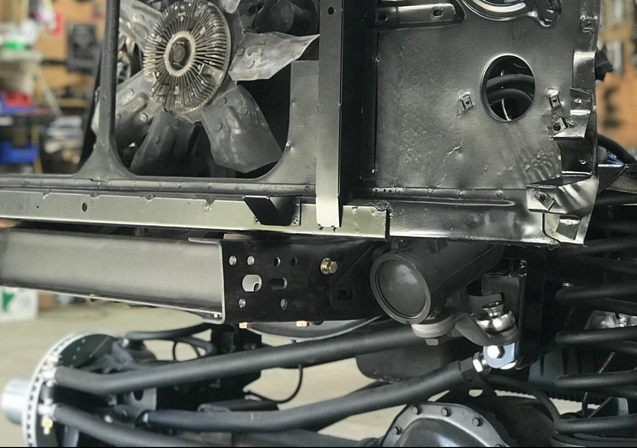 ** 72-74 had a unique engine crossmember. We have frame brackets to match the rivet pattern on the side, but clearances are different and should be either swapped for a 75-93 version or kept up at at least 4” of lift. Please specify if you are keeping the 72-74 engine crossmember. It will require different parts.