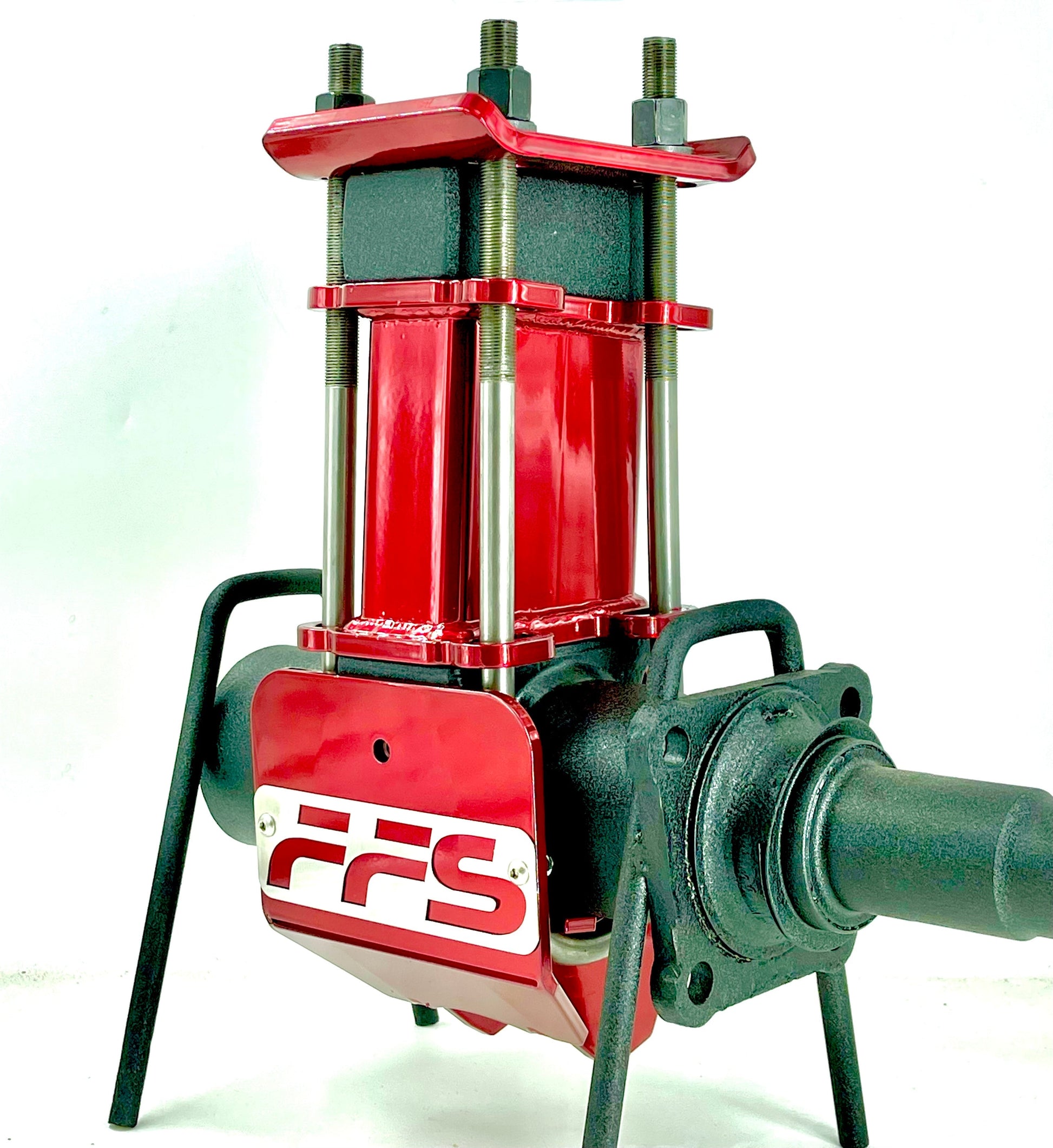 First it replaces your original bottom U-bolt plate that incorporates the shock mount on the bottom of your axle, providing a single bracket to mount both the shock and the traction bar, and it’s bolt on. This is the main difference from our traditional kit. This mod includes a swap to a traditional round bottom U-bolt with the threads up and plate on top for a nice clean look. Includes a stainless FFS badge on the rear surface and an overlay plate for triple layer color. This is designed for a dana 70 with a 3.5” diameter tube. Can be for a different size tube on request (like a dana 80 if you swapped it).