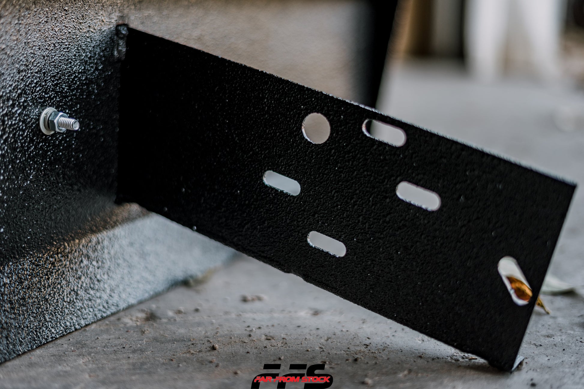 We also have the matching rear. Roll pan like look but easy mounting and ruggedness like a regular bumper. Set up for a Rigid Industries srq light kit to make backing up in the dark awesome! Includes a FFS badge. Pricing includes a discount if you purchase the front and rear together. The rear has improved into a bumper that when welded and easily smoothed can be powder coat ready. We are working towards the same on the front. Rear bumper face welding has been eliminated and a jig included for locating the frame brackets.