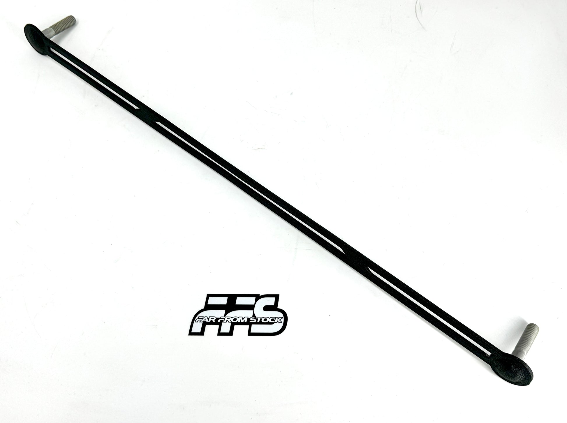 (4) Another nuisance item that has bothered us is that the radiator, intercooler or air conditioning condenser often blocks access to the bolts for the core support bushings. Many times we have wanted to remove the core support fully loaded, either on its own, or with the cab assembled with front fenders. The 91.5-93 trucks have an oem attempt at this but it often fails. So we made a one piece set of bolts to drop in your core support to be the wrench. Now you can easily remove the core support from the bottom only.