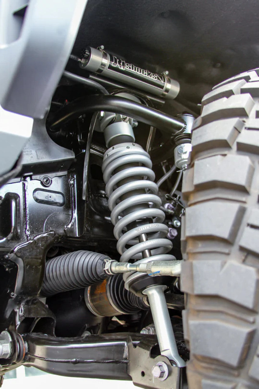 The front shocks are designed for a 1.75-inch lift but still allow for finer ride height adjustment via the spring preload. All four shocks feature 2-stage remote compression adjusters on each reservoir, allowing you to fine-tune your suspension to correlate with your terrain and comfort.Â